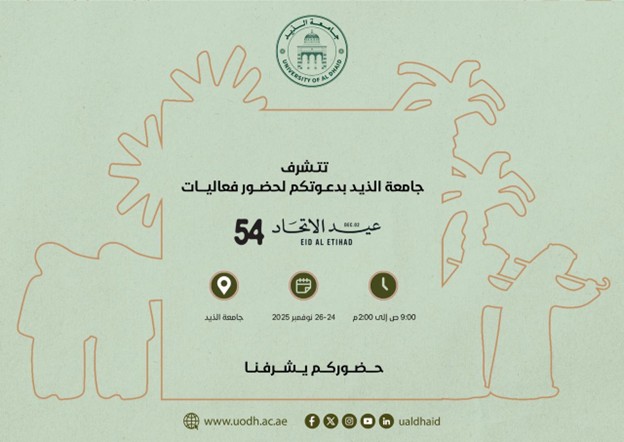 تدعوكم جامعة الذيد للمشاركة في الفرصة التطوعية الميدانية " تنظيم حفل اليوم الوطني 54 " وذلك من خلال المساهمة في تقديم الدعم التنظيمي والاشرافي في الحفل المقام لليوم الوطني في جامعة الذيد .
